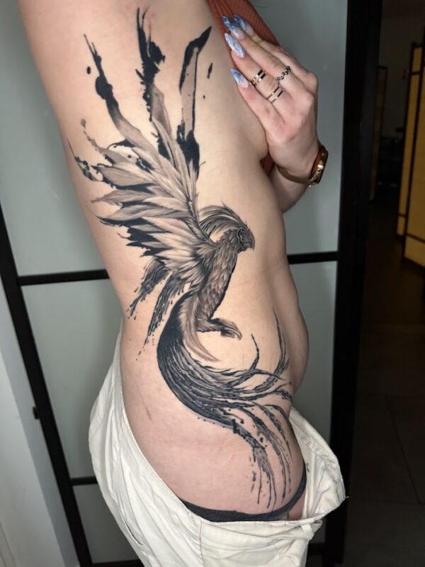Ich bin Tätowiererin seit 1992 und habe klassisch mit einer selbst gebauten Maschine angefangen. Später borgte ich mir von einer Freundin regelmäßig eine Spulenmaschine aus, bis ich Stück für Stück mein eigenes Equipment zusammenhatte. 1998 begann ich in einem Nagelstudio offiziell zu tätowieren und habe über die Jahre meine Stilrichtungen immer weiter entwickelt. Seit 30 Jahren bin ich erfolgreich selbständig.